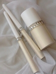 Сімейне вогнище зі стразовим поясом — весільний набір із трьох білих свічок, призначений для проведення традиційної церемонії єднання родини. Комплект складається з двох тонких батьківських свічок та однієї центральної свічки молодят. Свічки мають гладку поверхню та декоровані кришталевими стразовими елементами у вигляді поясу, що надає композиції урочистого вигляду.Набір виконаний у стриманому білому кольорі, легко поєднується з весільним декором та підходить для класичного стилю церемонії.В комплект входить:- 2 конусні свічки - 2,2х25 см