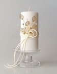 Весільний набір свічок з металевим декором «Leaf»Вишуканий набір із трьох свічок для церемонії «Сімейне вогнище», виконаний у благородному білому кольорі з вертикальною фактурою. Стриманий дизайн поєднується з декоративними металевими листочками та кришталевими елементами, що створюють делікатне сяйво та ефект легкості.Декор представлений у різних варіаціях:- срібні листочки з прозорими кристалами