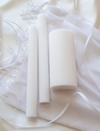Елегантний набір свічок у мінімалістичному стилі для весільної церемонії. Комплект складається з двох тонких свічок і однієї центральної свічки. Рифлена текстура додає свічкам витонченості та створює стриманий, сучасний вигляд. Лаконічний дизайн робить цей набір універсальним доповненням до весільної церемонії та святкового декору.В комплект входить:- 2 циліндричні свічки з візернуком смужка - 2,8х25 см